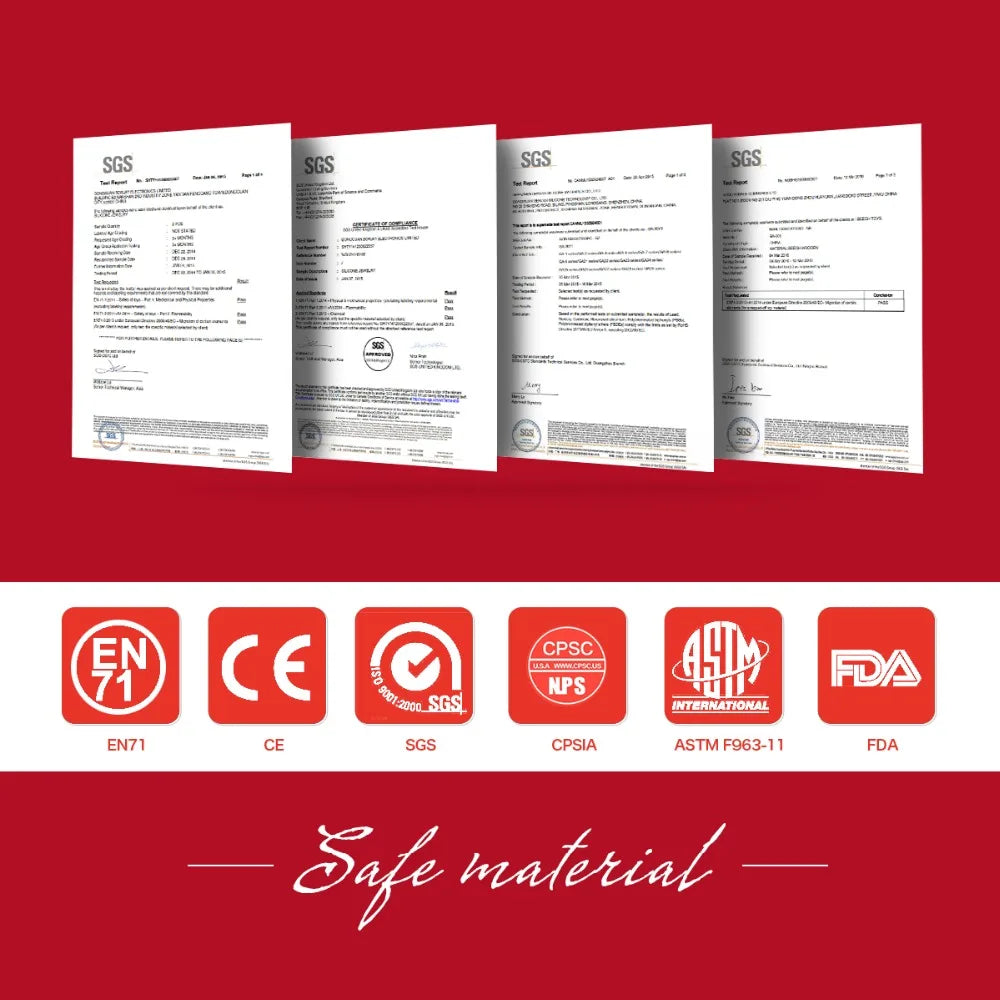 Designed for babies and toddlers aged 7 months to 6 years, this set is free from harmful materials such as latex, nitrosamine, phthalates, BPA, and PVC. It is also certified by CE, CIQ, EEC, LFGB, and SGS, giving you peace of mind when it comes to your child's health and safety.